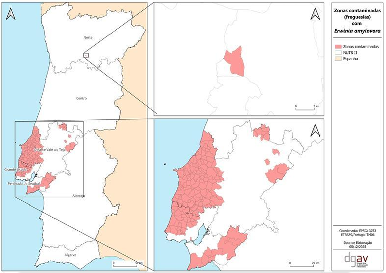 A DGAV procede à divulgação do Despacho n.º 158/G/2025 – Atualização das Zonas Demarcadas para Erwinia amylovora.