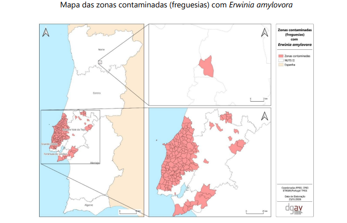 A DGAV procede à divulgação do Edital 1/2026/Ea/LVT/N – Notificação da Aplicação de Medidas Fitossanitárias Zonas Contaminadas com Erwinia amylovora.