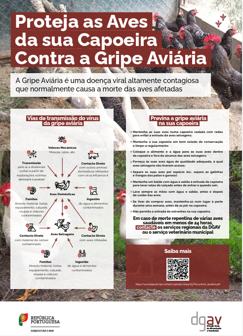 - Comunique imediatamente aos serviços da DGAV qualquer suspeita de gripe aviária nas suas aves