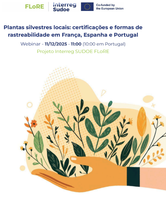 Realiza-se no próximo dia 11 de dezembro às 10h00 (hora de Portugal), o Webinar transnacional «Plantas silvestres locais: certificações e formas de rastreabilidade em França, Espanha e Portugal», no âmbito do projeto FLoRE (2024-2027).